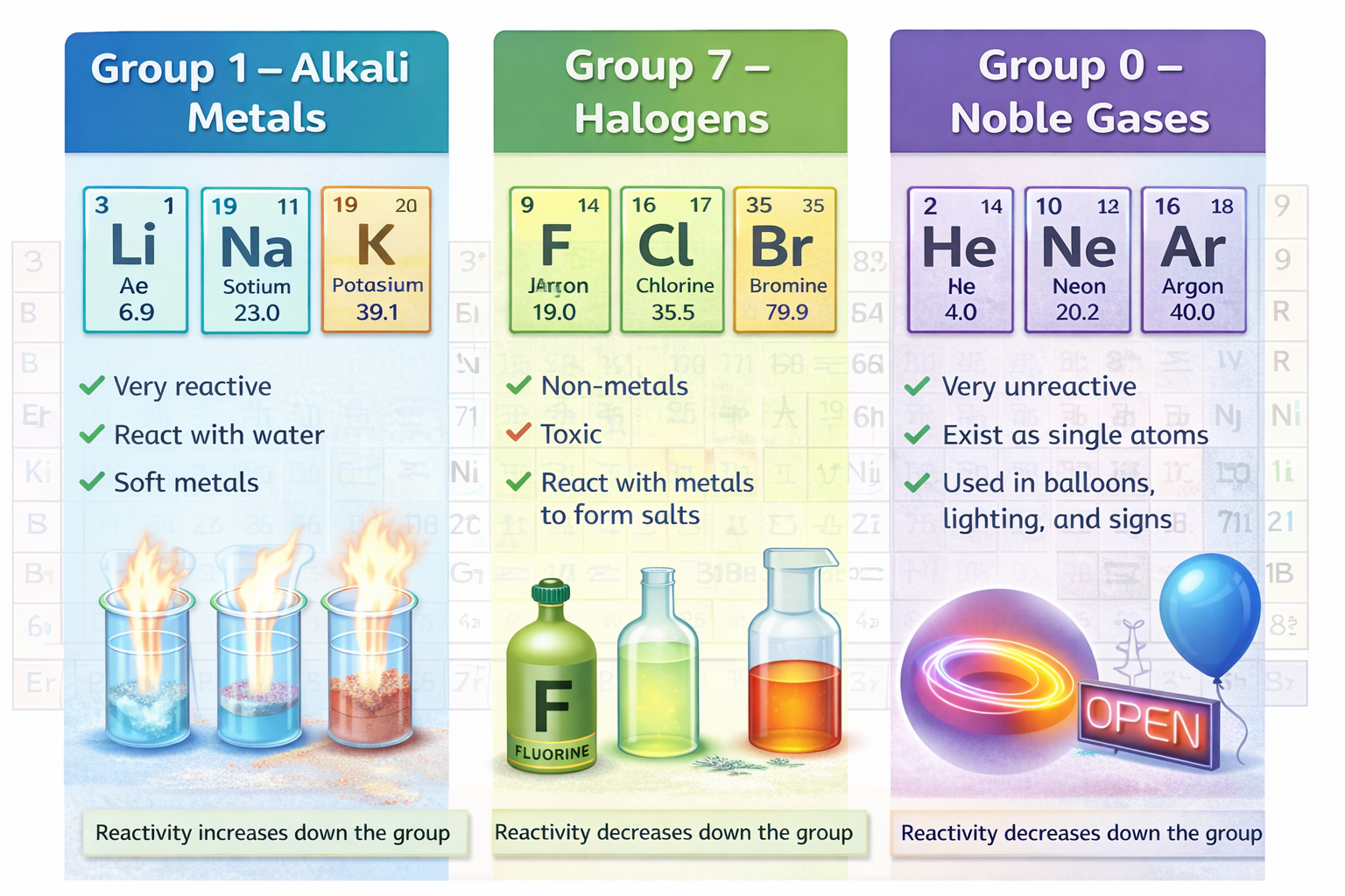 - Recall properties of Group 1, Group 7, and Group 0.
