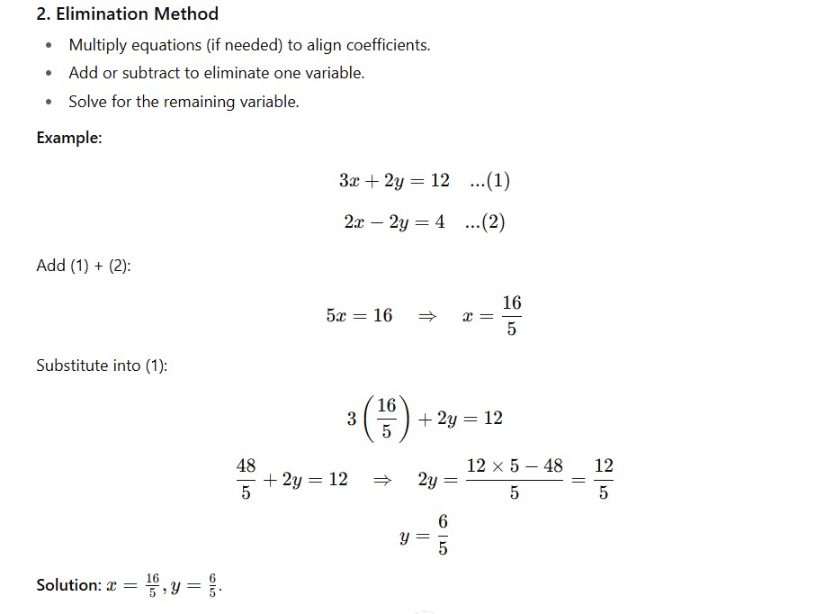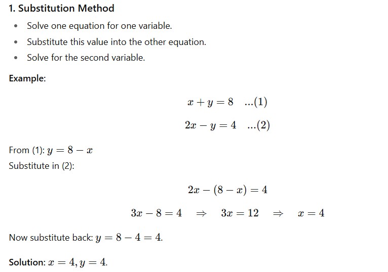 Simultaneous linear equations are an essential part of algebra and are widely used in mathematics, physics, economics, and real-life problem solving. These equations help us find the values of two or more unknowns that satisfy all equations at the same time.